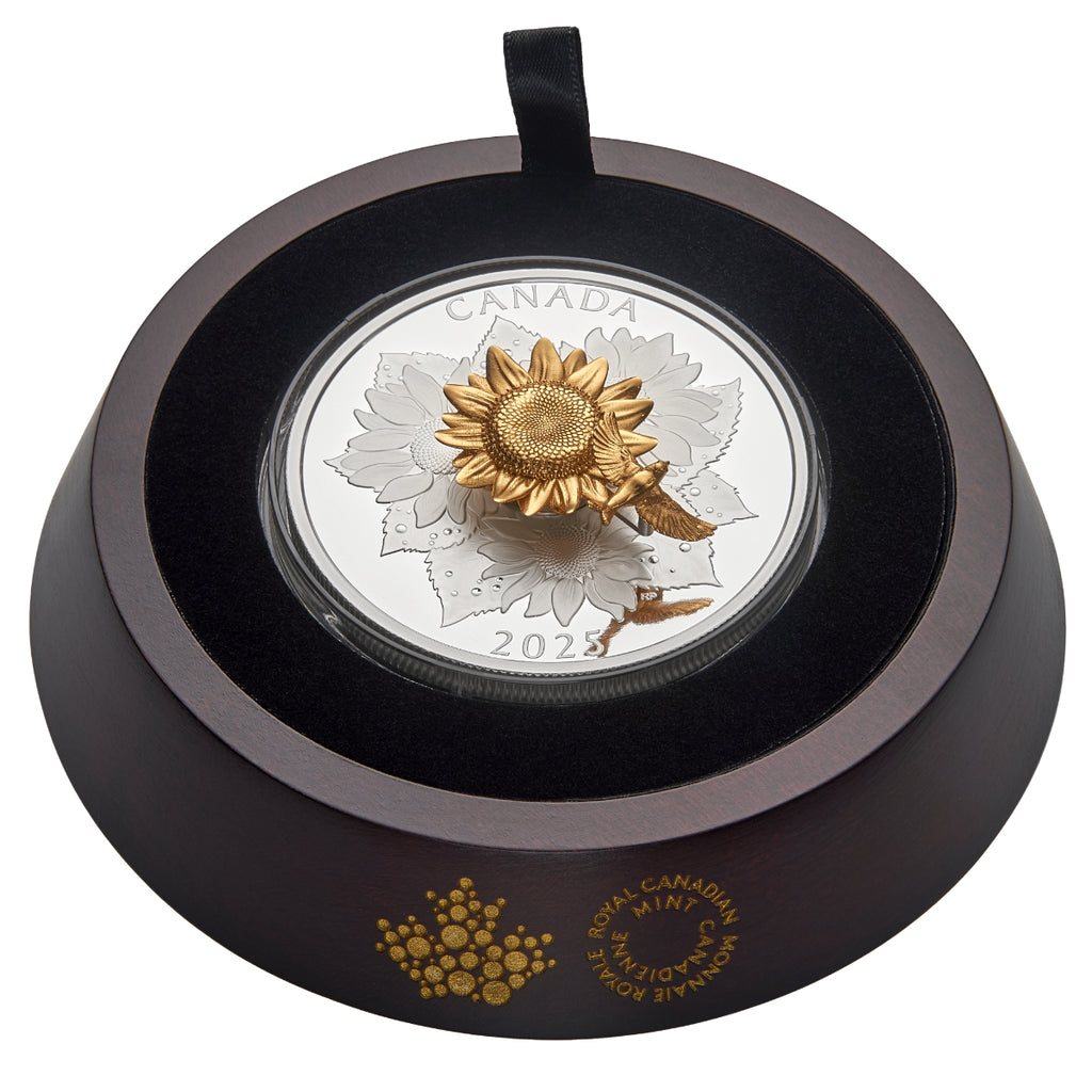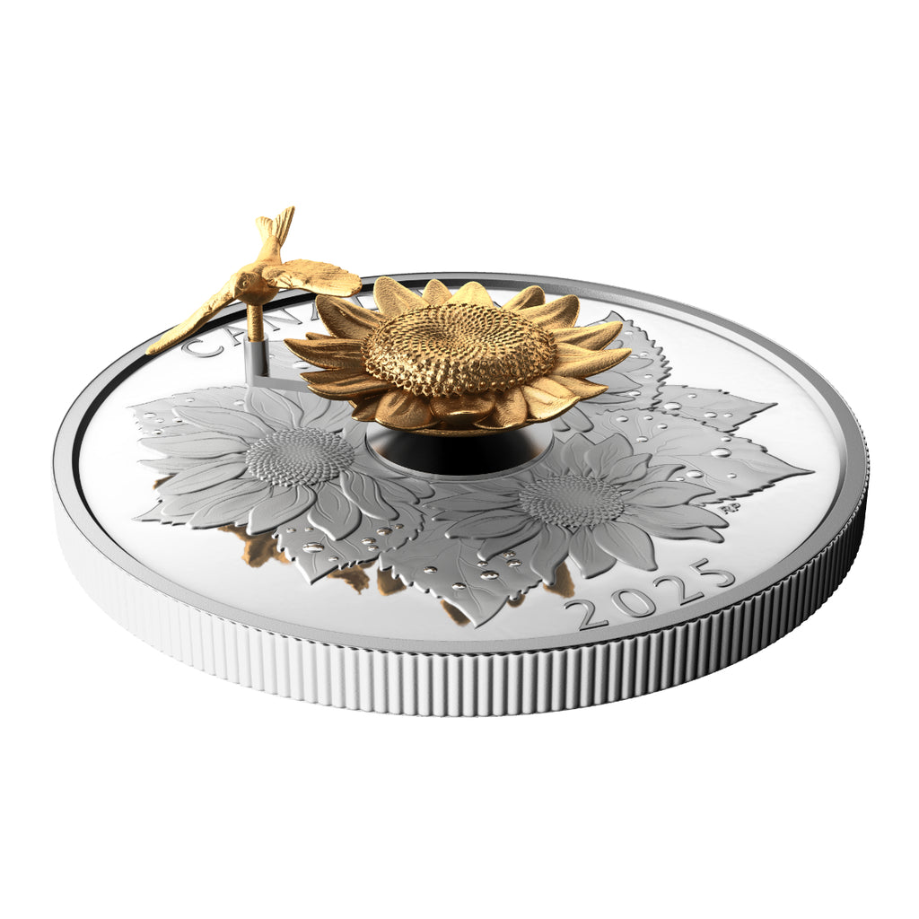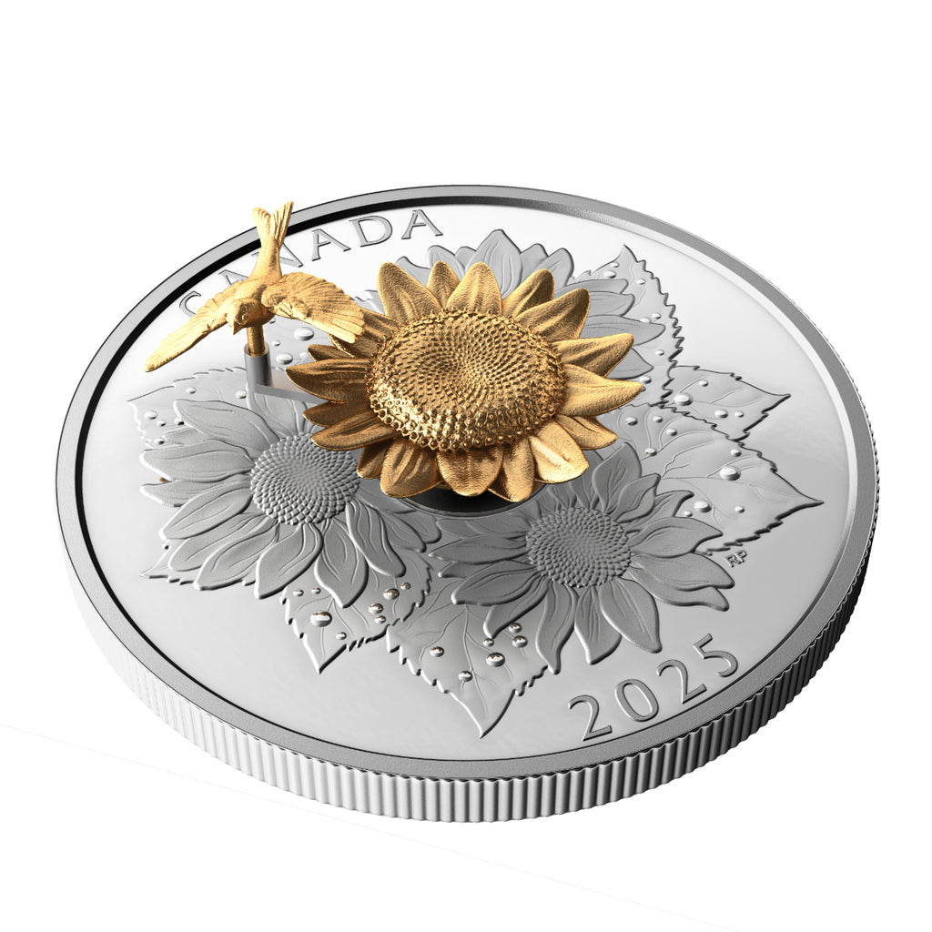 Recognized by its black and canary-yellow breeding plumage, a goldfinch delivers a dose of sunshine in feathery form wherever it appears, whether at backyard feeders or in the sunflower patch featured here. This 2025 fine silver movement coin perfectly captures and preserves the spirit of summer through an interactive reverse design, which encourages you to tilt your coin for a glimpse of nature in motion.