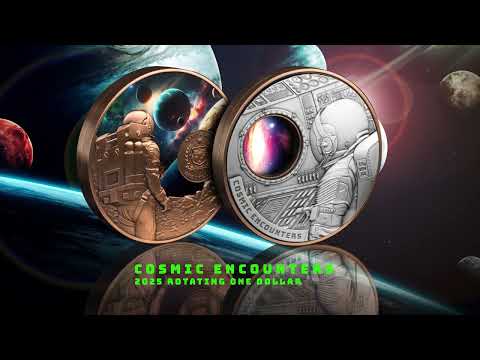 Prepare for liftoff with the groundbreaking Cosmic Encounters 2025 $1 High Relief Rotating Silver & Copper Bimetal Antique Coin! This awe-inspiring masterpiece blends 15 grams of 99.9% pure silver with a substantial 340 grams of copper, creating a massive 75mm diameter collectible unlike anything seen before. The innovative design allows you to rotate the copper base, offering a mesmerizing view of the cosmos through the window of your spaceship. Struck in razor-sharp High Relief, both the reverse and obverse dazzle with a vibrant burst of full colour, bringing the vastness of space to life.
