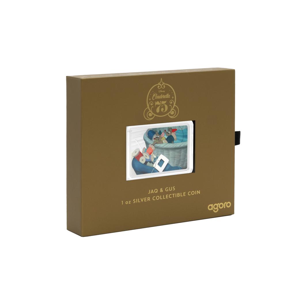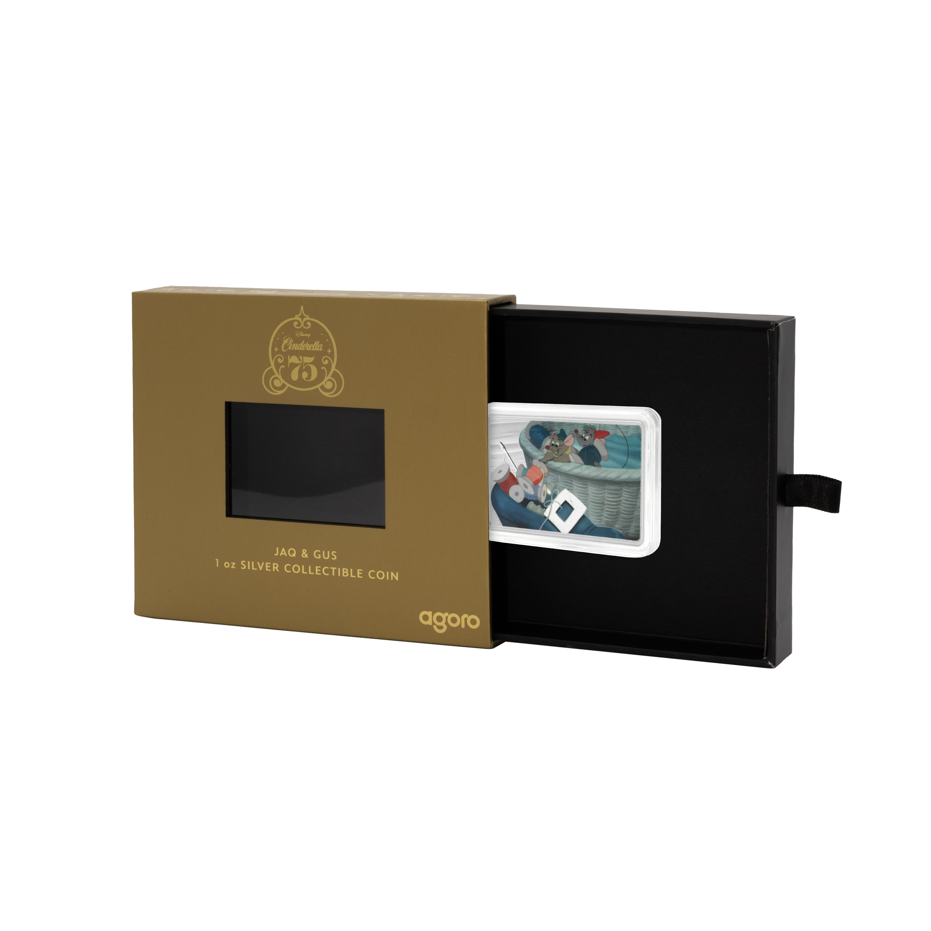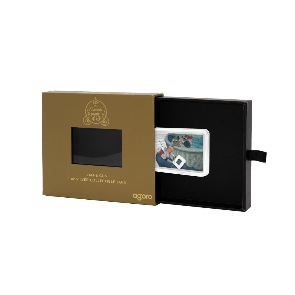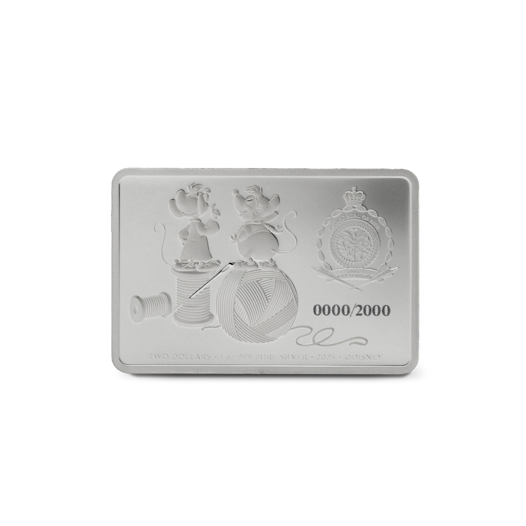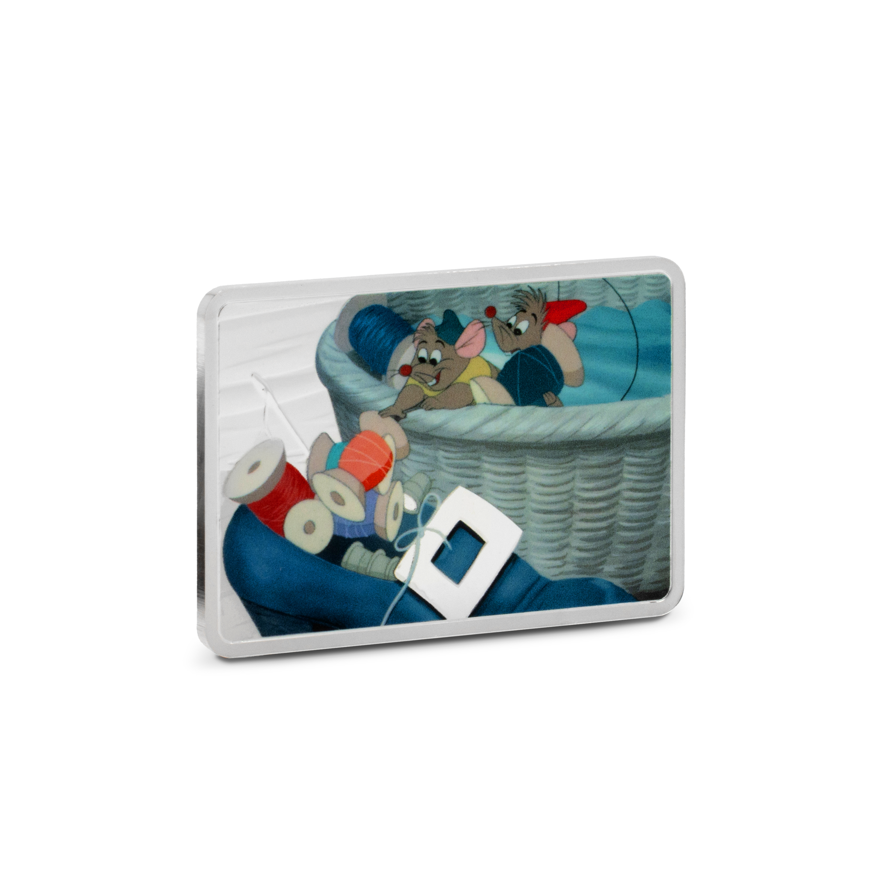 This officially licensed silver coin brings their heartwarming moment to life with stunning coloured artwork depicting Jaq and Gus as they carefully place spools of thread in a shoe. The background and shoe buckle are elegantly engraved with a frosted finish, while the needle gleams in a striking mirror effect. With an exclusive mintage of just 2,000 coins worldwide, each piece is individually numbered on the obverse and confirmed as legal tender by the Public Seal of Niue.