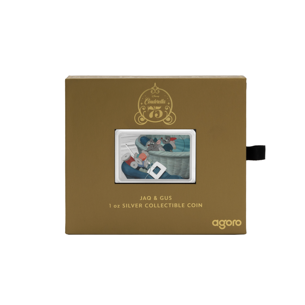 Disney’s beloved Cinderella celebrates its 75th anniversary with this enchanting 1oz pure silver collectible, featuring her loyal little helpers, Jaq and Gus. These adorable mice played a crucial role in Cinderella’s fairytale journey, using friendship, teamwork, and a little magic to transform her rags into a beautiful gown for the Royal Ball.