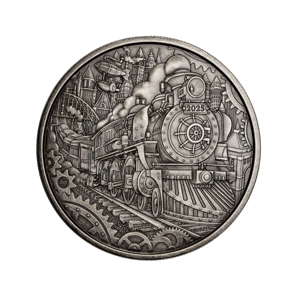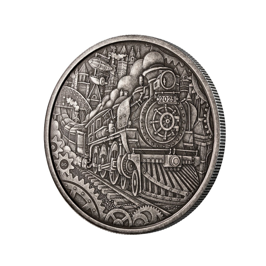 Embark on a journey to a retro-future with this steampunk scene, which captures the grit and grandeur of an industrial age imagined through the eyes of a bygone era. A stylized steam-powered locomotive leaves behind a fantastical vintage cityscape and comes alive with a depth of field captured by spectacular engraving and extraordinary detail that blur the lines between historical periods. GST/HST Exempt.